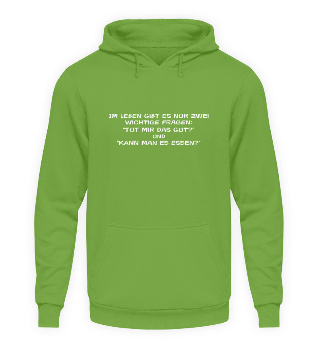 Im Leben gibt es nur zwei wichtige Fragen: 'Tut mir das gut?' und 'Kann man es essen?' – Der Hoodie für Genießer & Lebensphilosophen 🍕😆