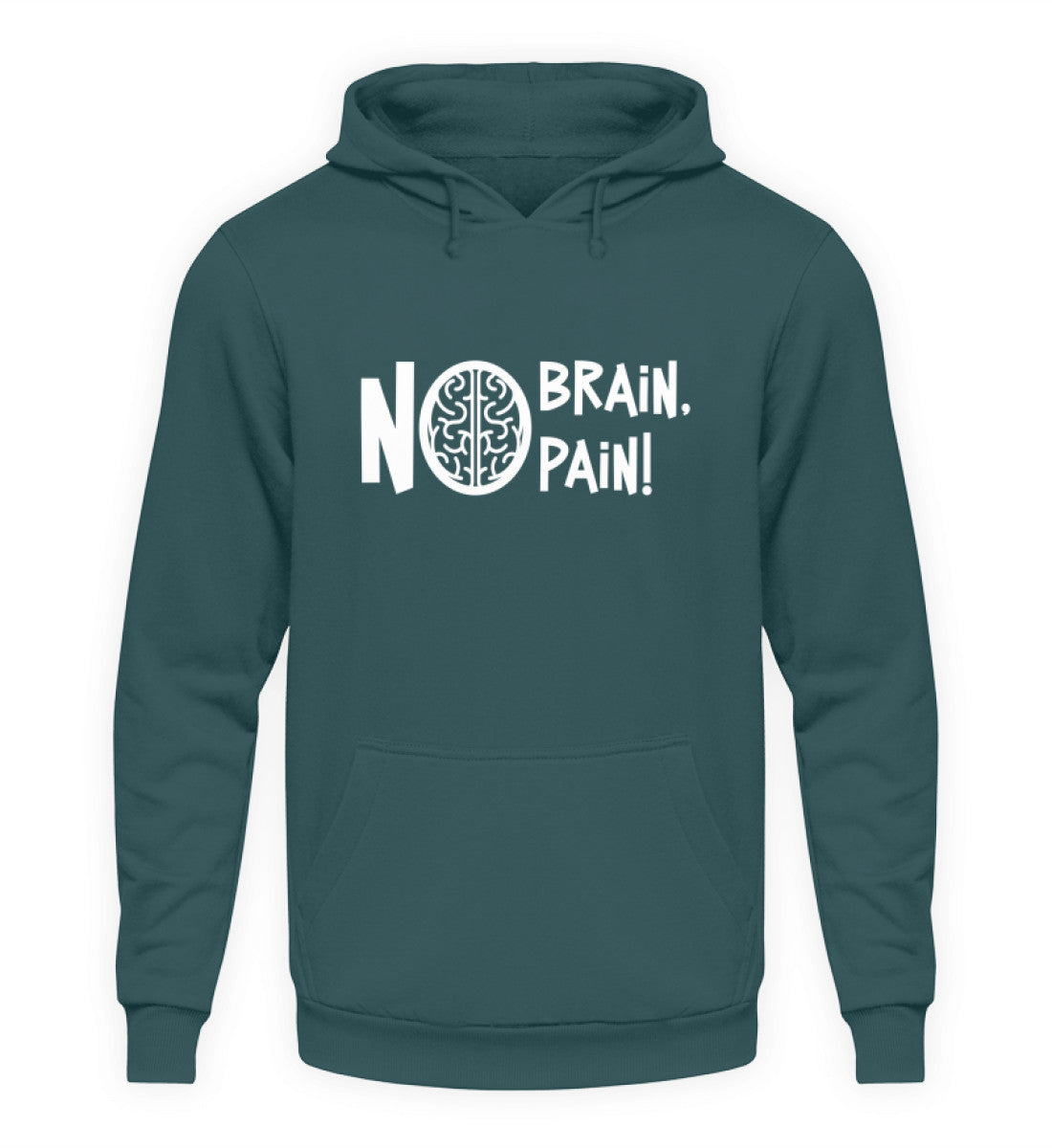 Mach dein Outfit zum Hingucker und zeige mit einem Augenzwinkern, wie entspannt du bist. Hol dir jetzt den Hoodie "No Brain, No Pain!" und bringe Humor, Komfort und Stil in deinen Alltag – warm, lässig und einzigartig! 😎🔥✨